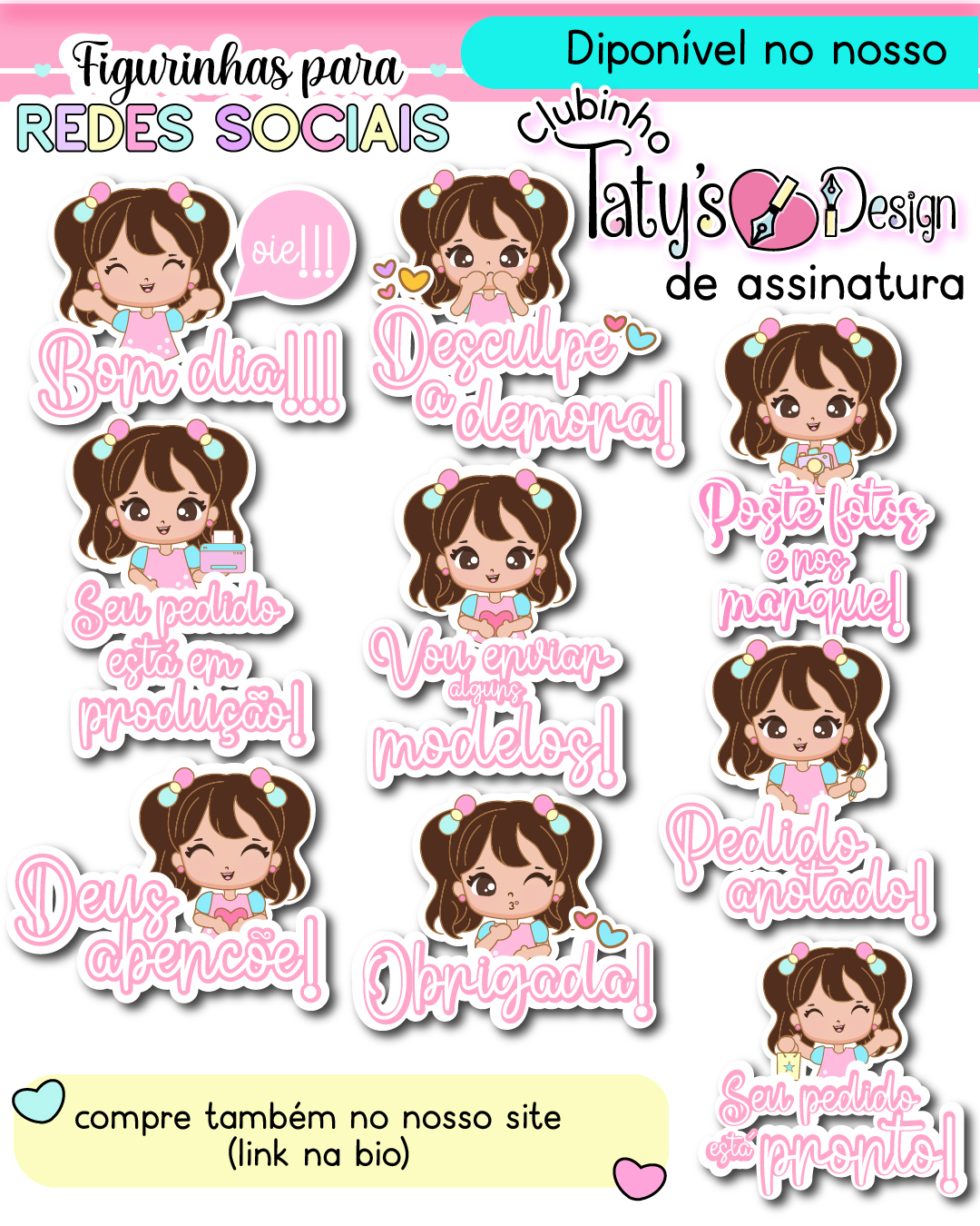 kit com 10 figurinhas com mascotinhas para redes sociais